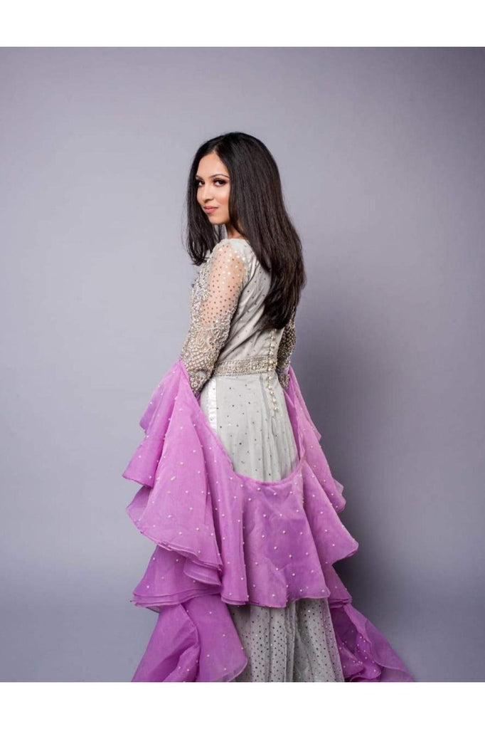 - Ruffle Dupatta with scattered pearls