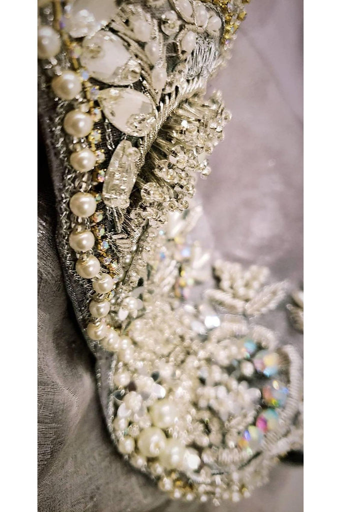 - Pure Self Printed Organza dupatta with scallop beaded edging