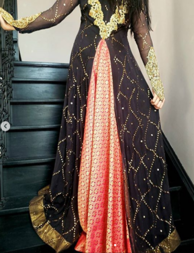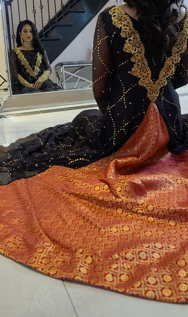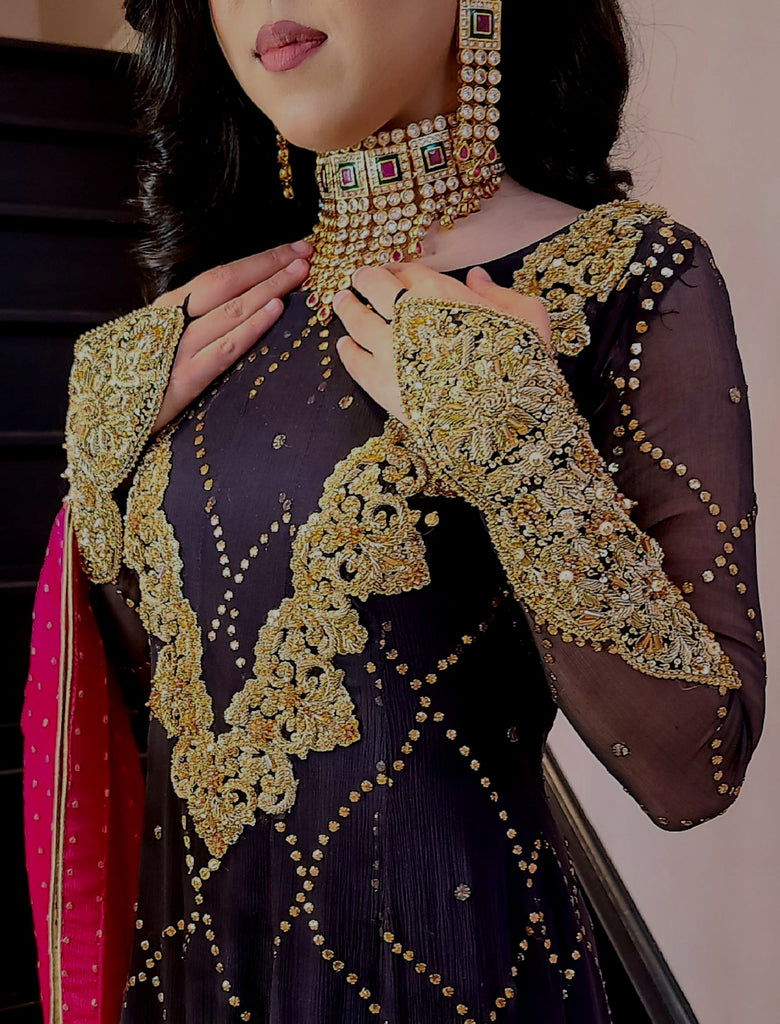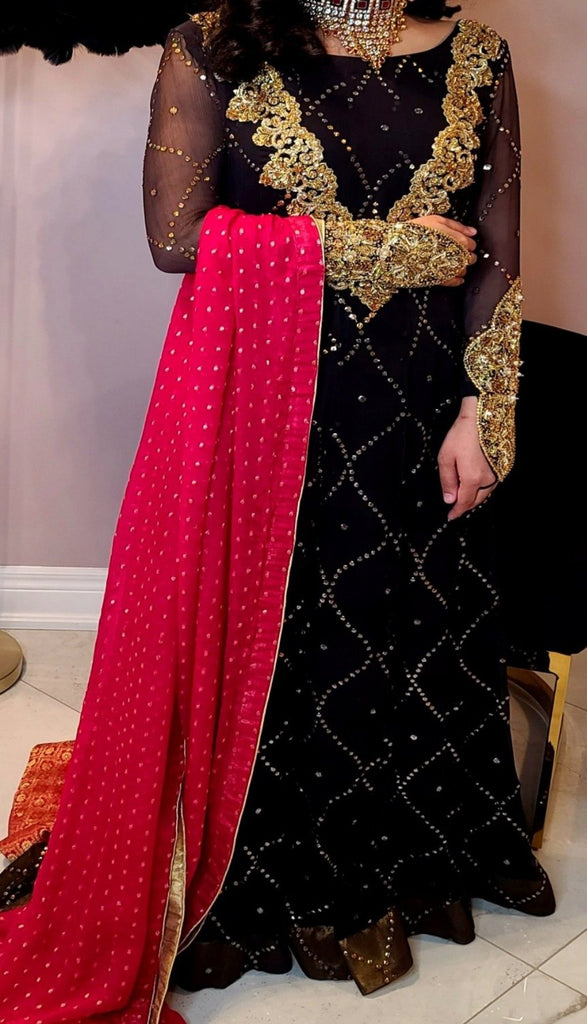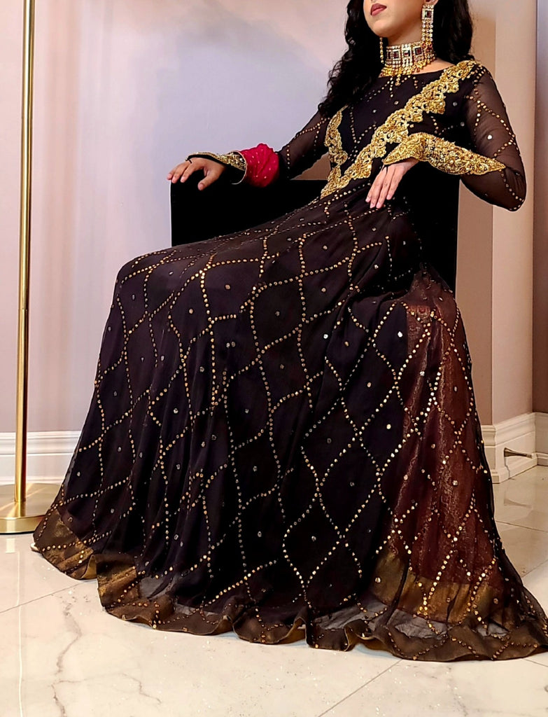 Pure Chiffon maxi with mukesh sparkling work all over.