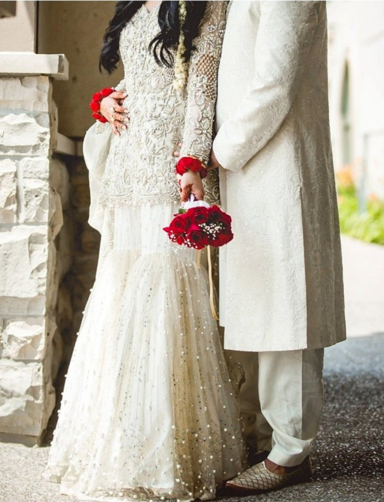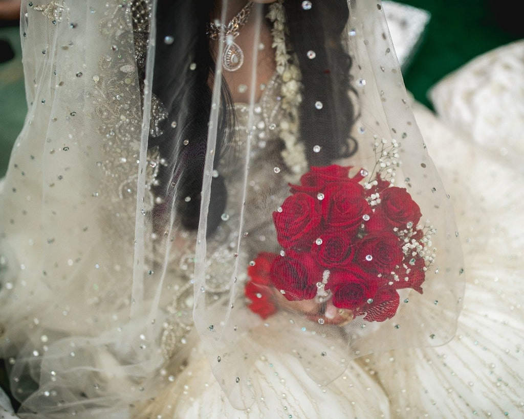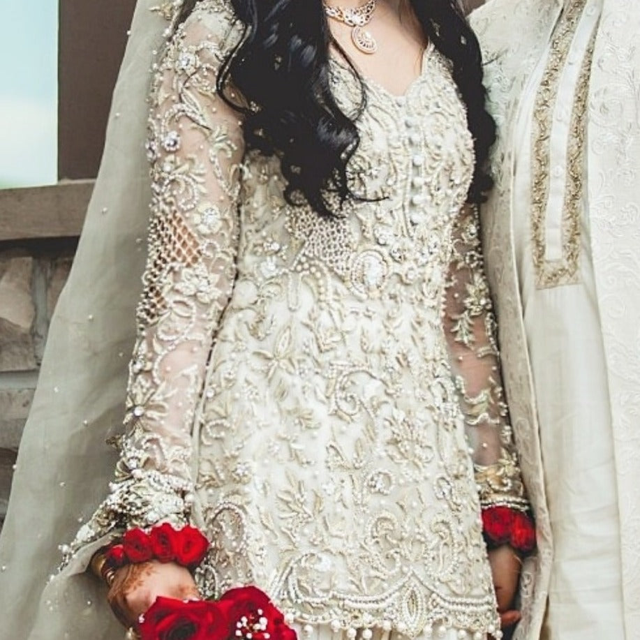 Net lehenga showered in pearls and stones. (Fabric is subject to availability)