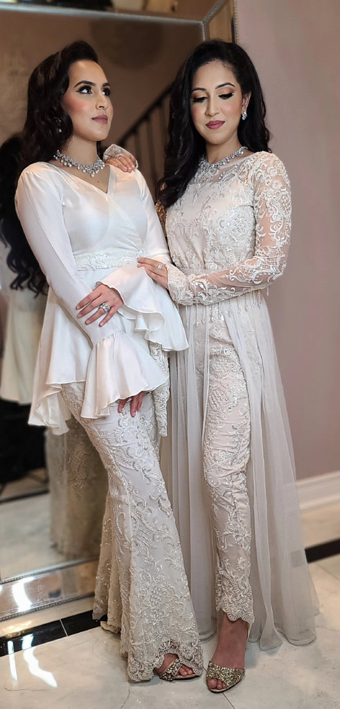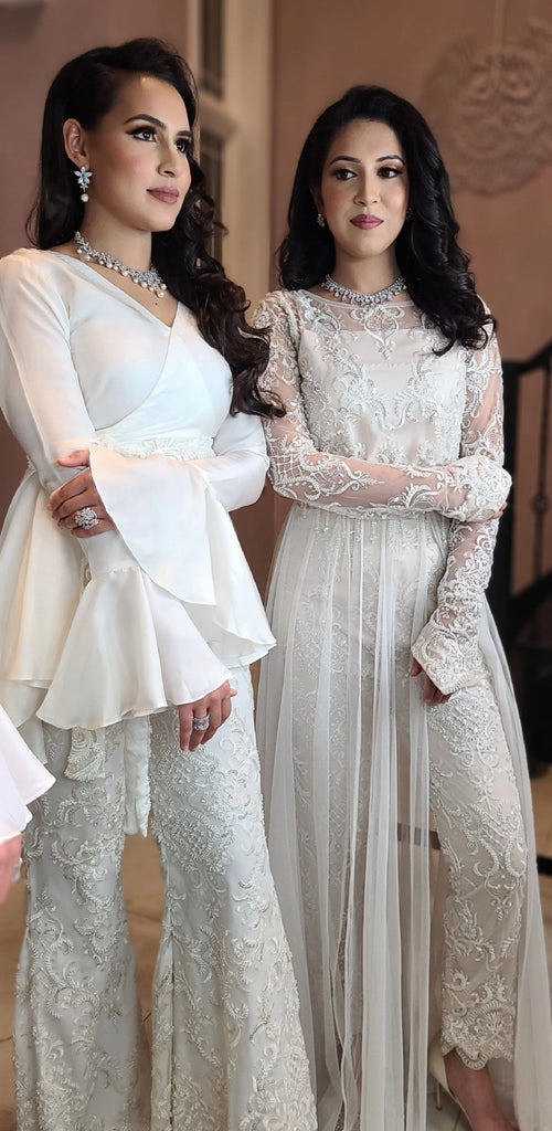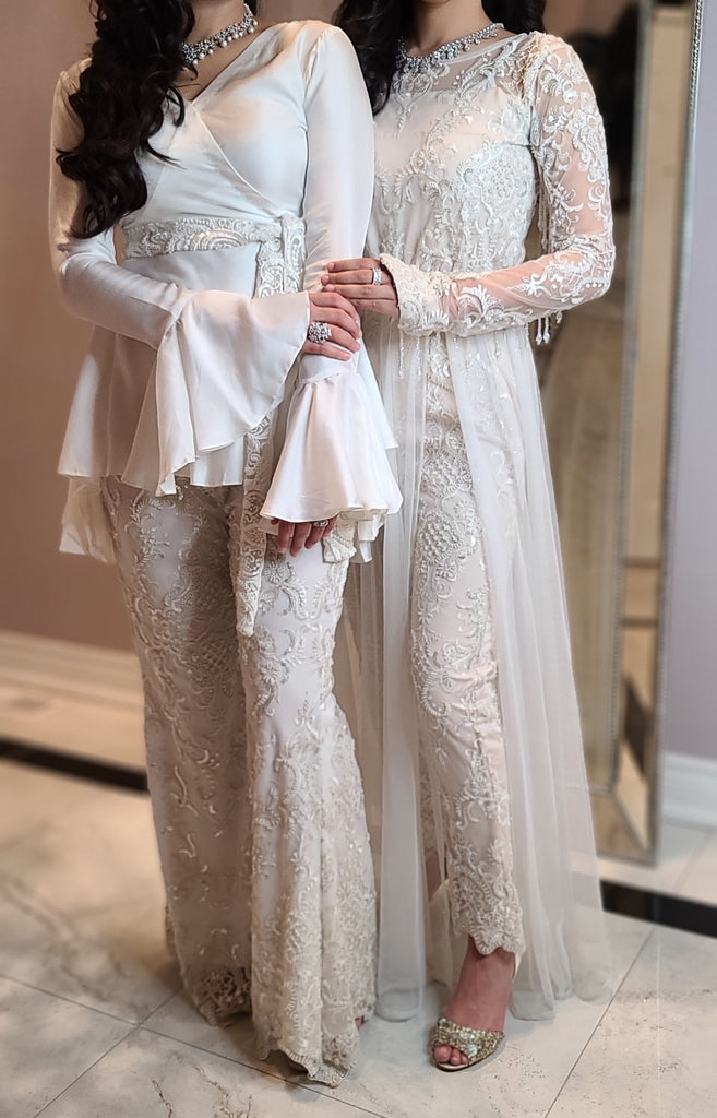 Paired with delicately embroidered net trousers and belt/sash, heavily beaded in glass beads and sequins.