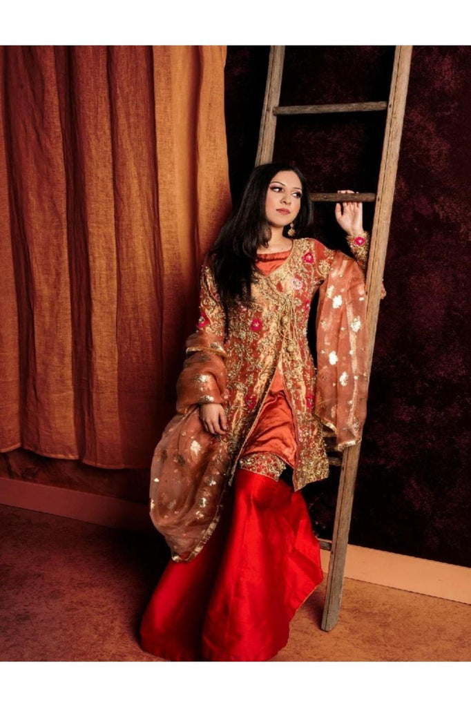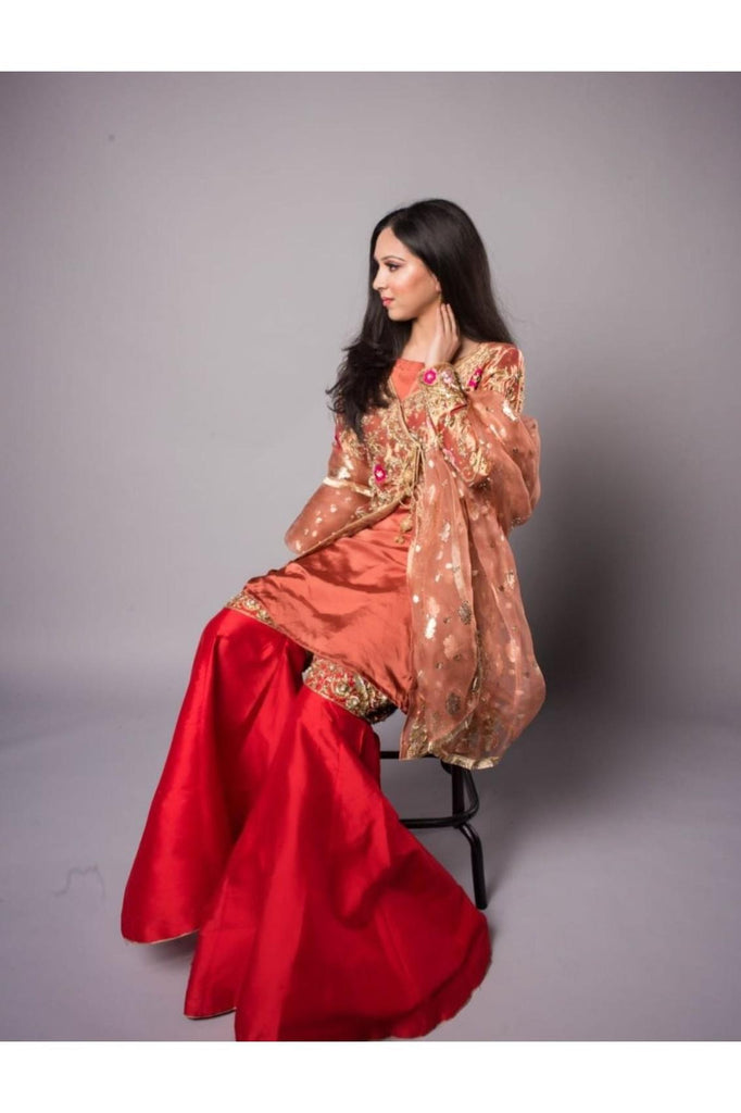 - Pure Organza Angharka Style A-Line, fully embellished shirt